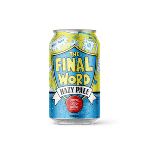 The Final Word Hazy Pale is a NEW limited edition Hazy Pale that's refreshingly crisp, with just the right amount of juicy hop character and a warm golden haze, all wrapped up in a slick cricket-loving can.