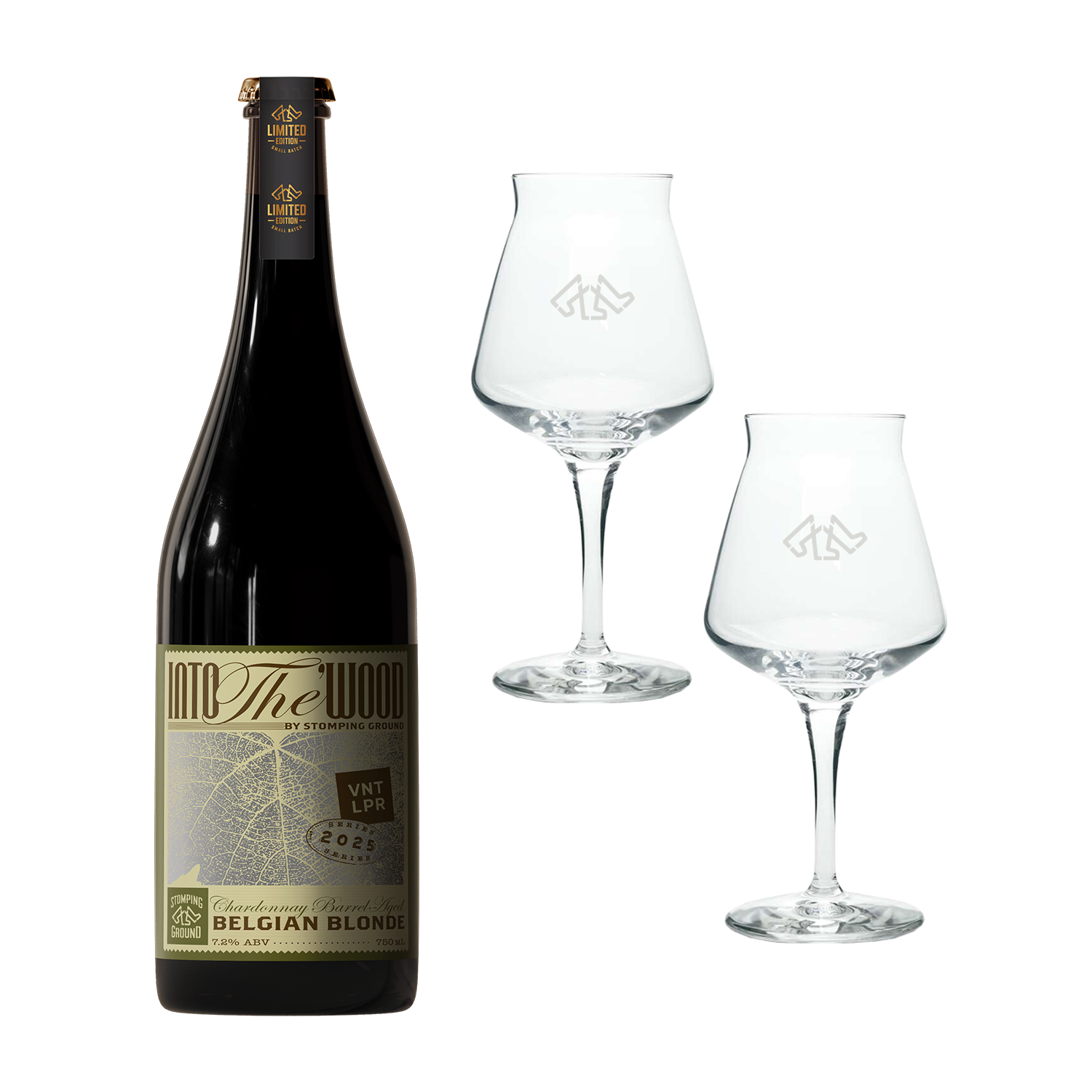 Sip your brand new Into The 'Wood Chardonnay Barrel-Aged Belgian Blonde in style with our limited edition Teku glasses.