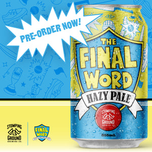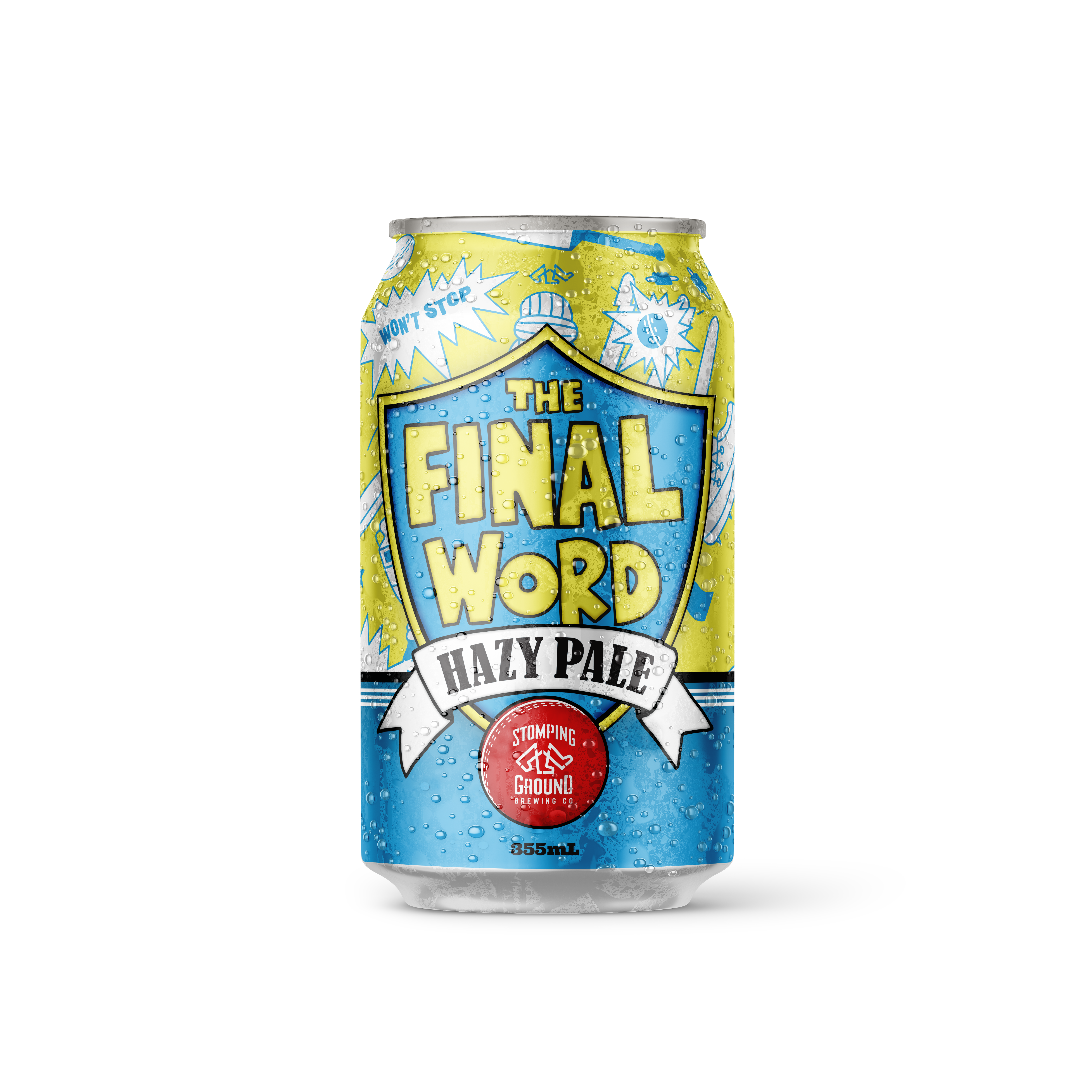 The Final Word Hazy Pale is a NEW limited edition Hazy Pale that's refreshingly crisp, with just the right amount of juicy hop character and a warm golden haze, all wrapped up in a slick cricket-loving can.